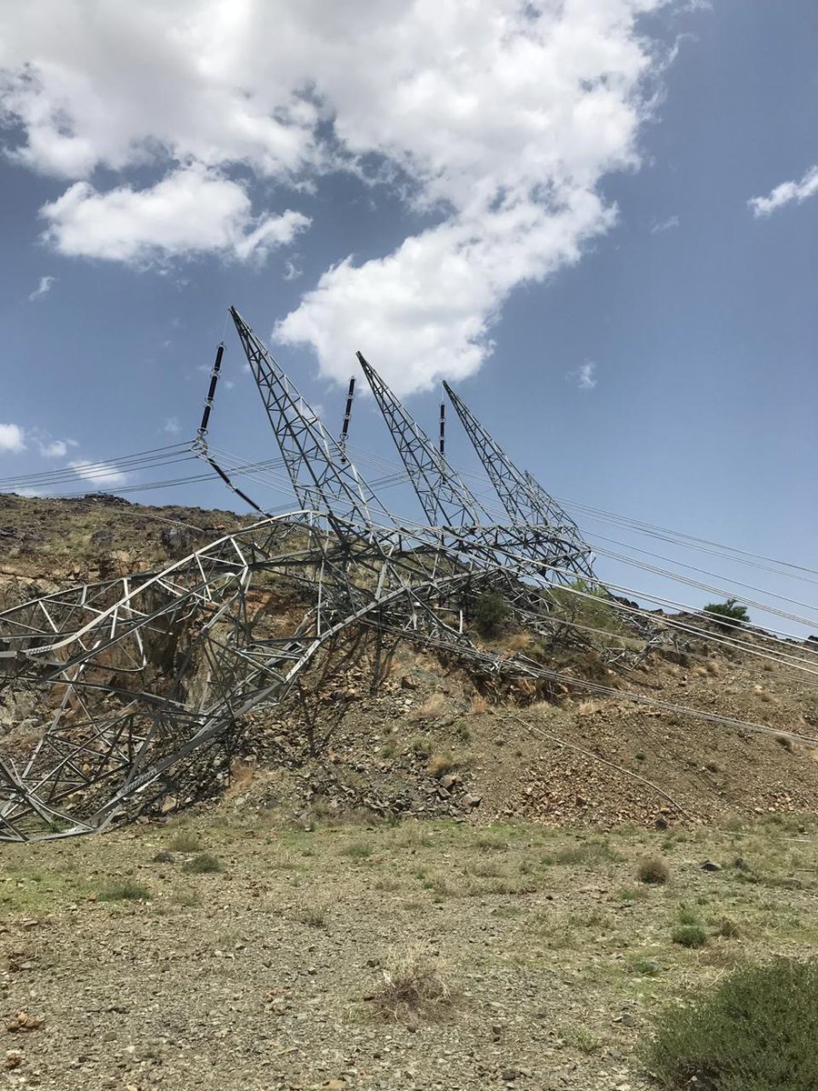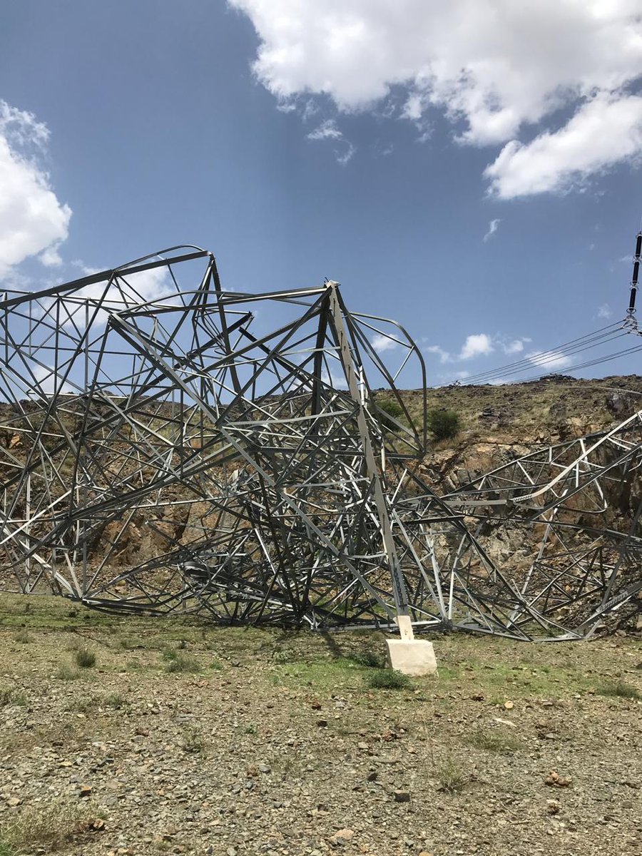 وأضافت: “تعمل فرق الصيانة الميدانية على معالجة الآثار التي خلفتها التقلبات الجوية والرياح وأدت لسقوط أبراج نقل مهمة؛ مما أثر على الخدمة الكهربائية في بعض والمدن والقرى جنوبي المملكة، وستتم معالجتها خلال الساعات المقبلة وتوفير البدائل المناسبة”.