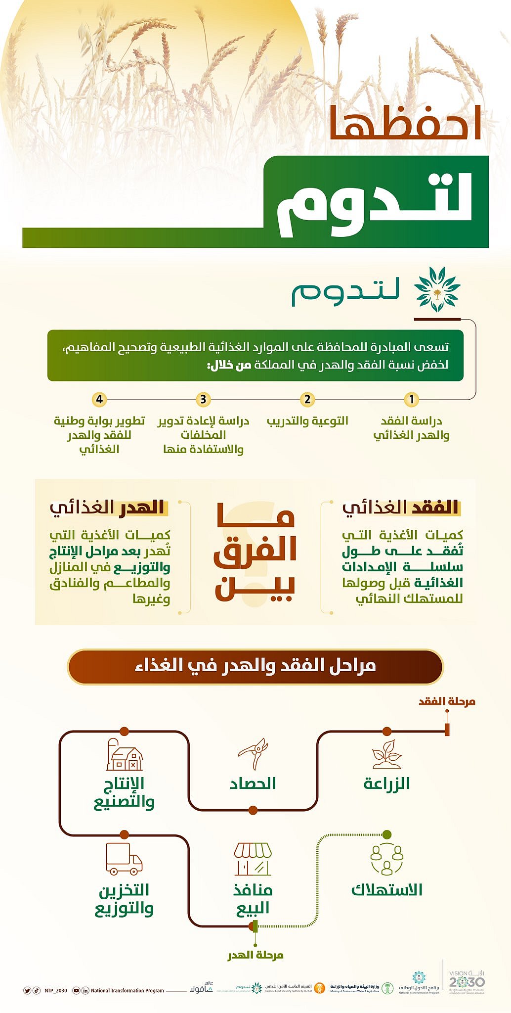 أطلق برنامج “التحول الوطني” المبادرة الوطنية “احفظها لتدوم”، للحد من الفقد والهدر في الغذاء.